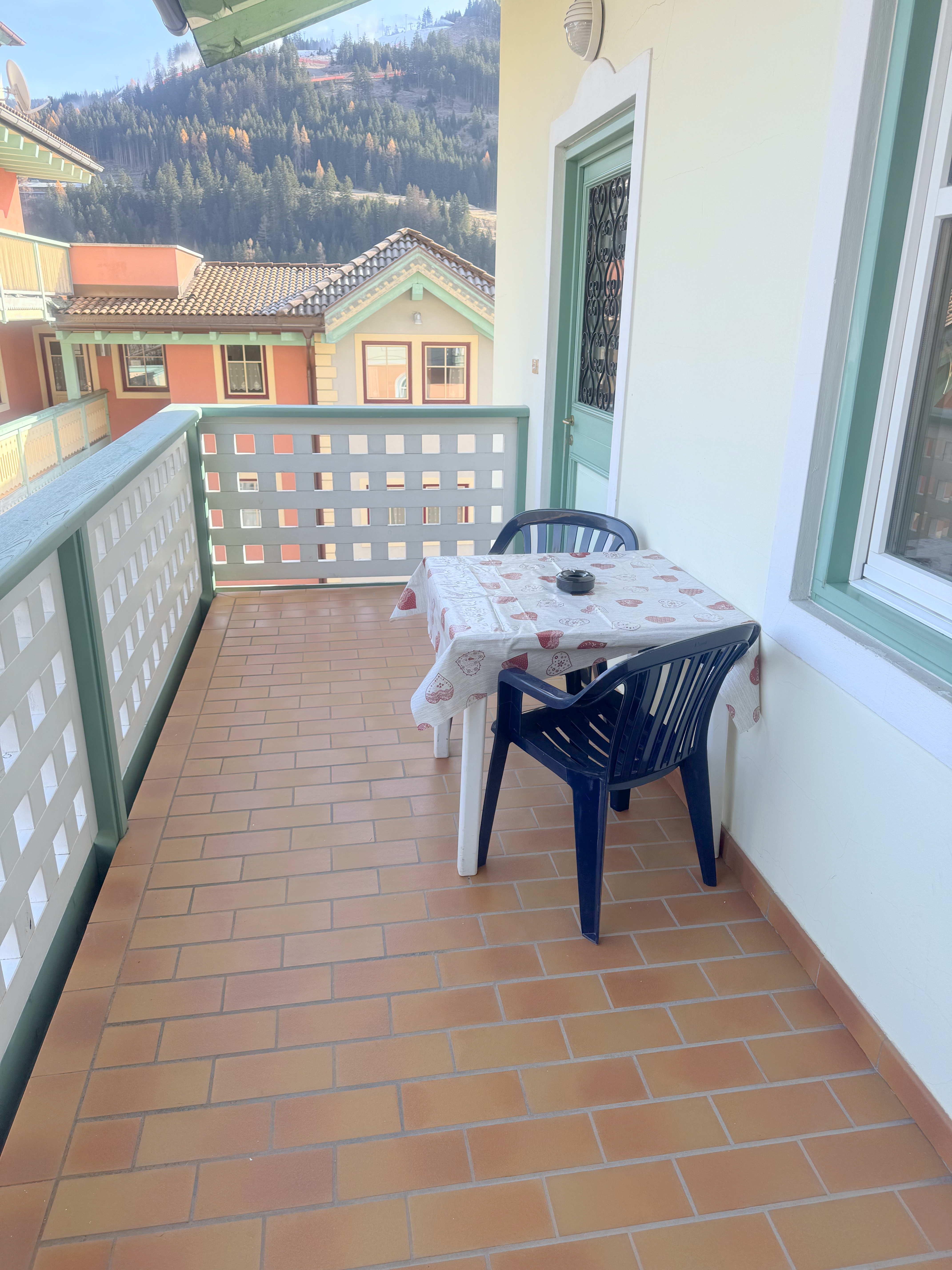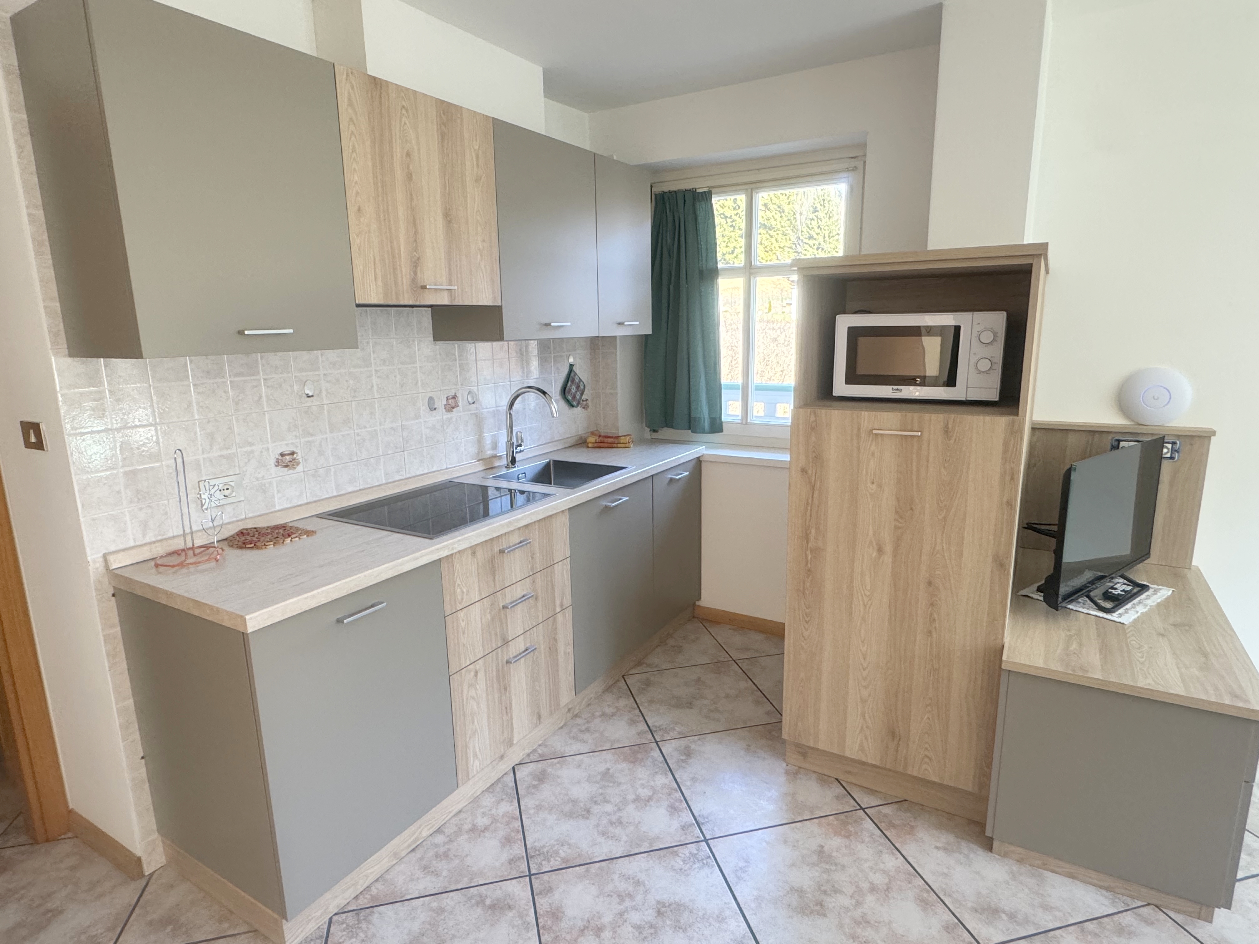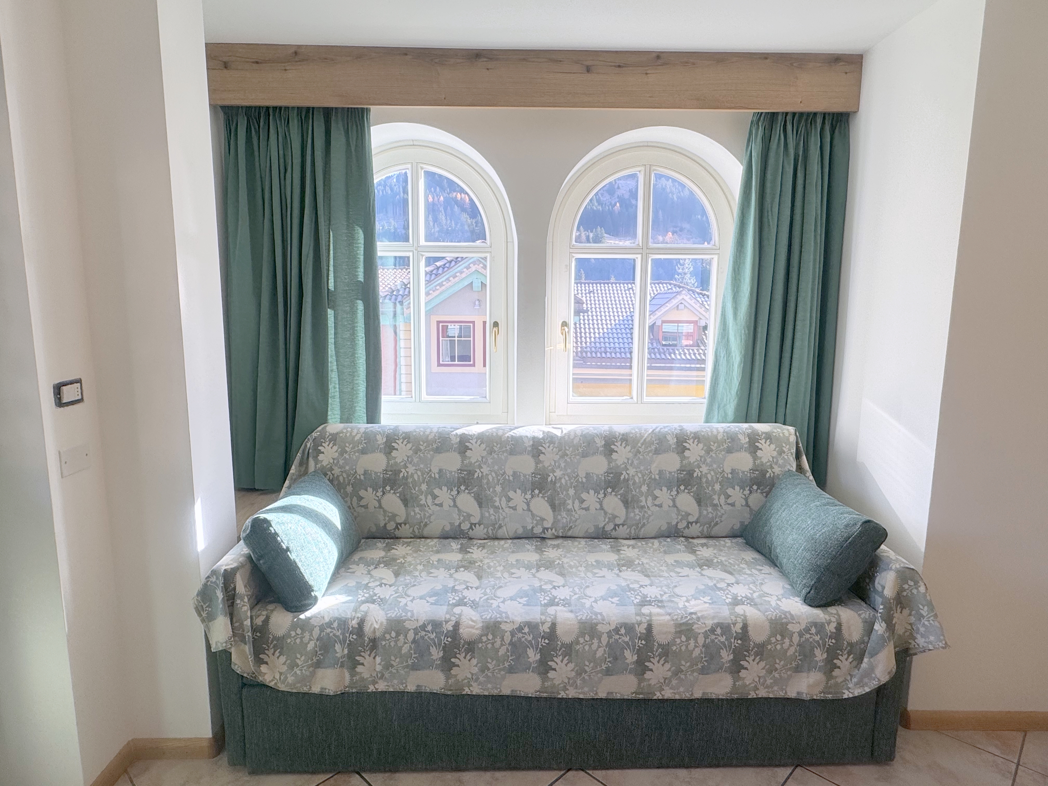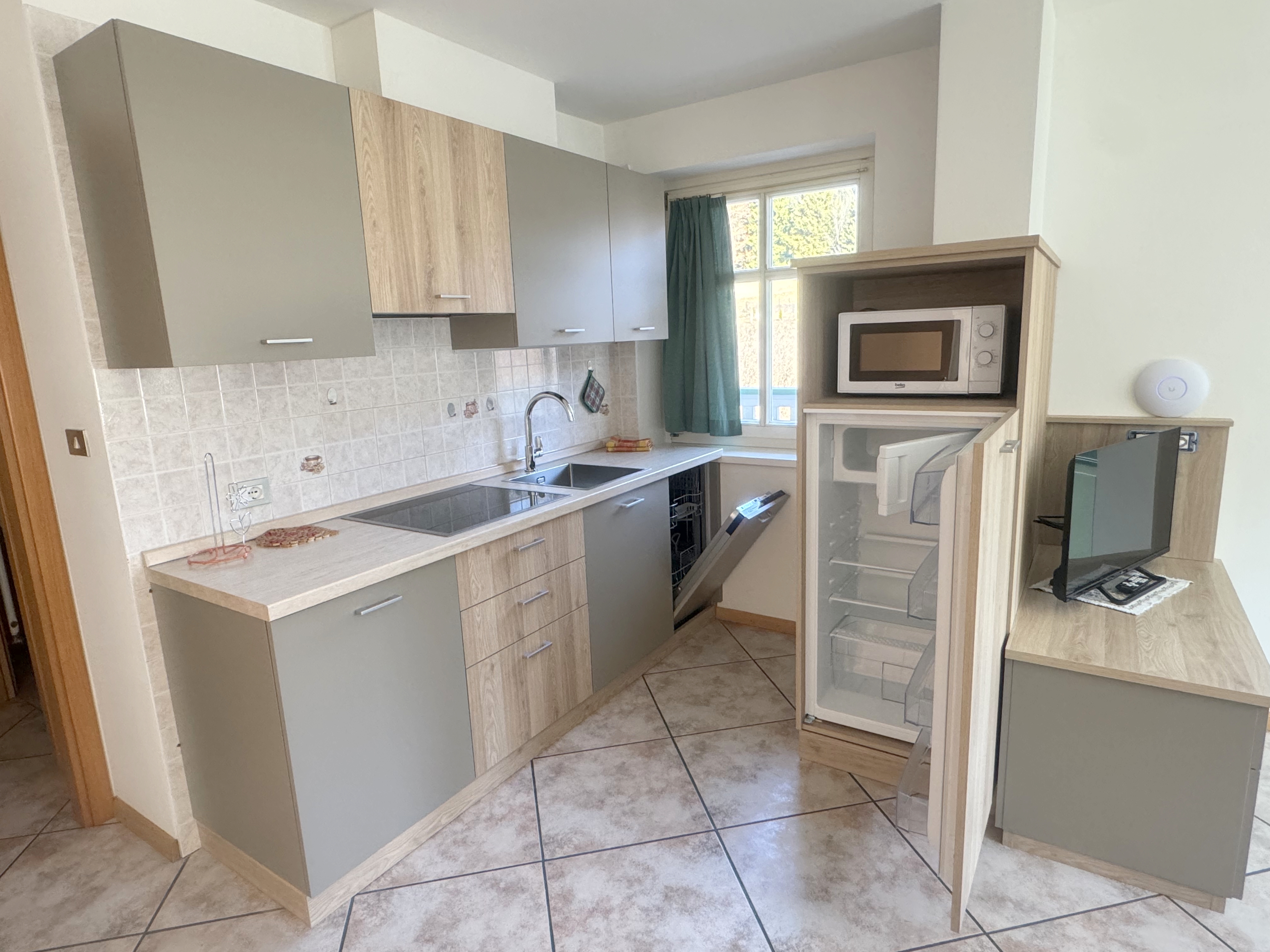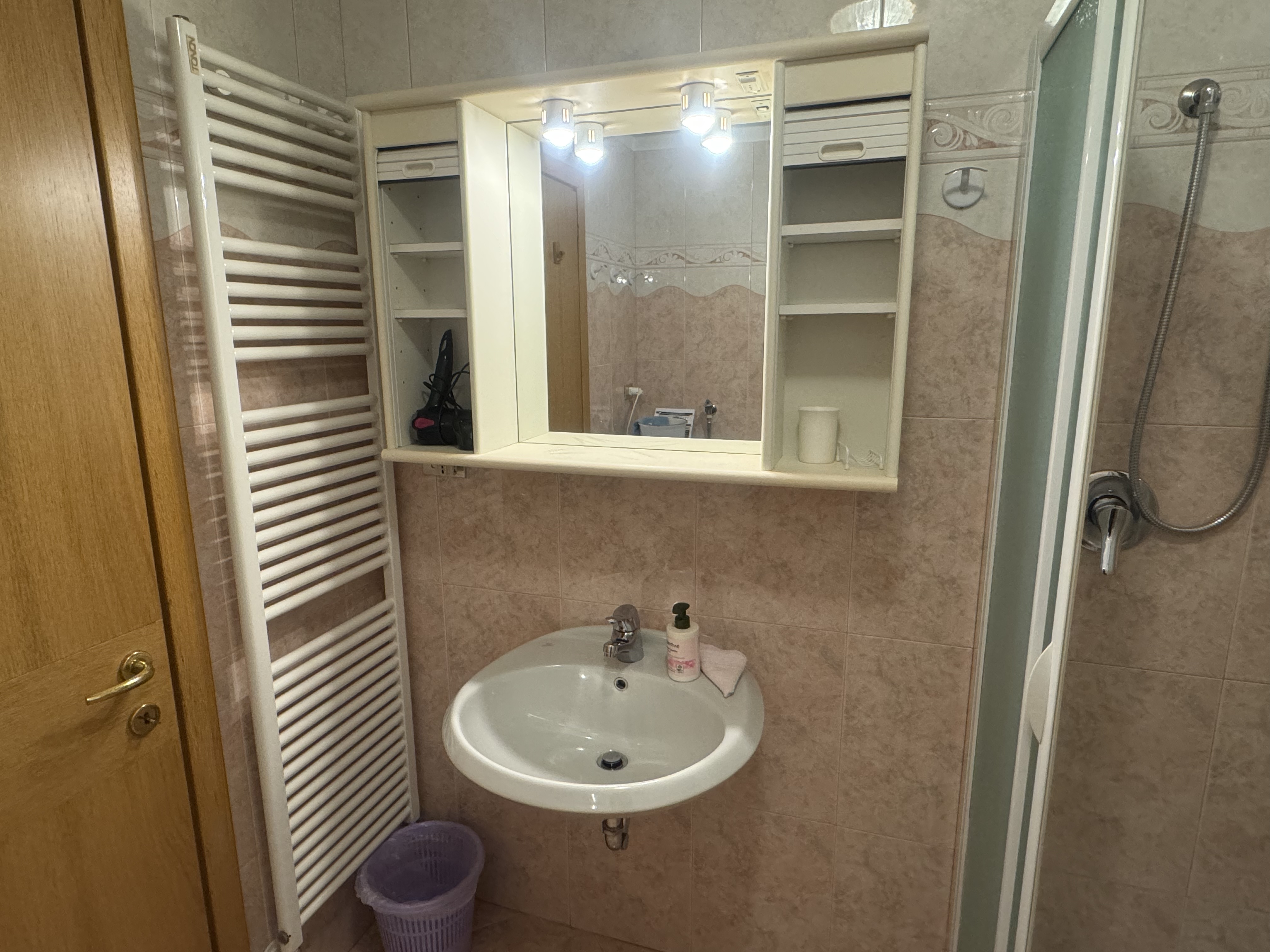Trilocale al primo piano, composto da una camera matrimoniale, una camera con un letto a castello e un terzo letto singolo, un bagno con doccia, asciugacapelli, lavatrice, accessori per stireria, zona giorno con angolo cottura attrezzato, piastra in vetroceramica, frigorifero (con scomparto freezer), microonde e bollitore, TV schermo piatto, due balconi.